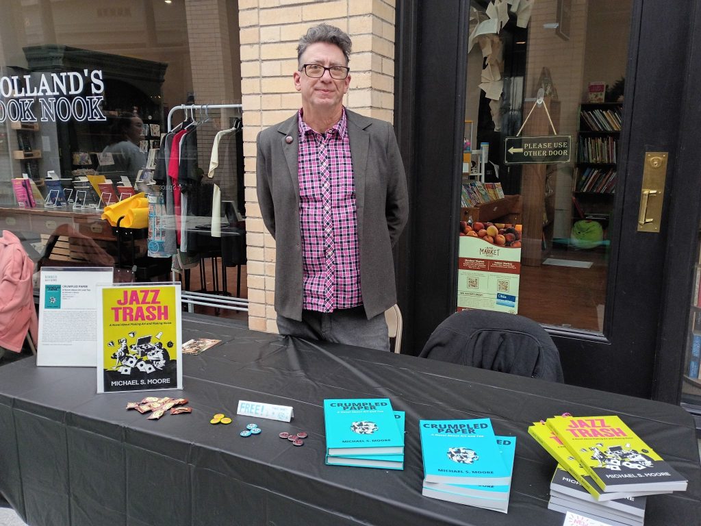 “Crumpled Paper by Michael S. Moore is our latest indie/local Staff Pick! Bookseller Aria heartily recommends this insightful and layered novel about art, philosophy, and slowing down to savor the good things in life.
